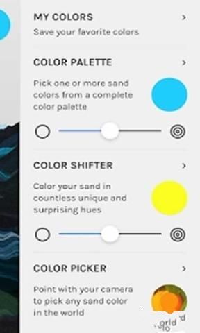 1、一起来体验画沙游戏的乐趣吧,选择你喜欢的沙色,将它铺满你的整个屏幕;